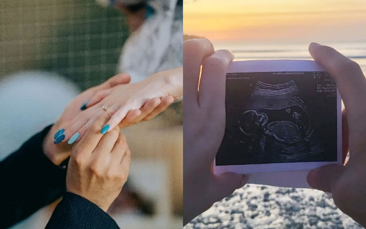 胡佳琪10月23日在Instagram上载与未婚夫的剪影视频、一张戒指及一张超声波照片,宣布双喜临门。