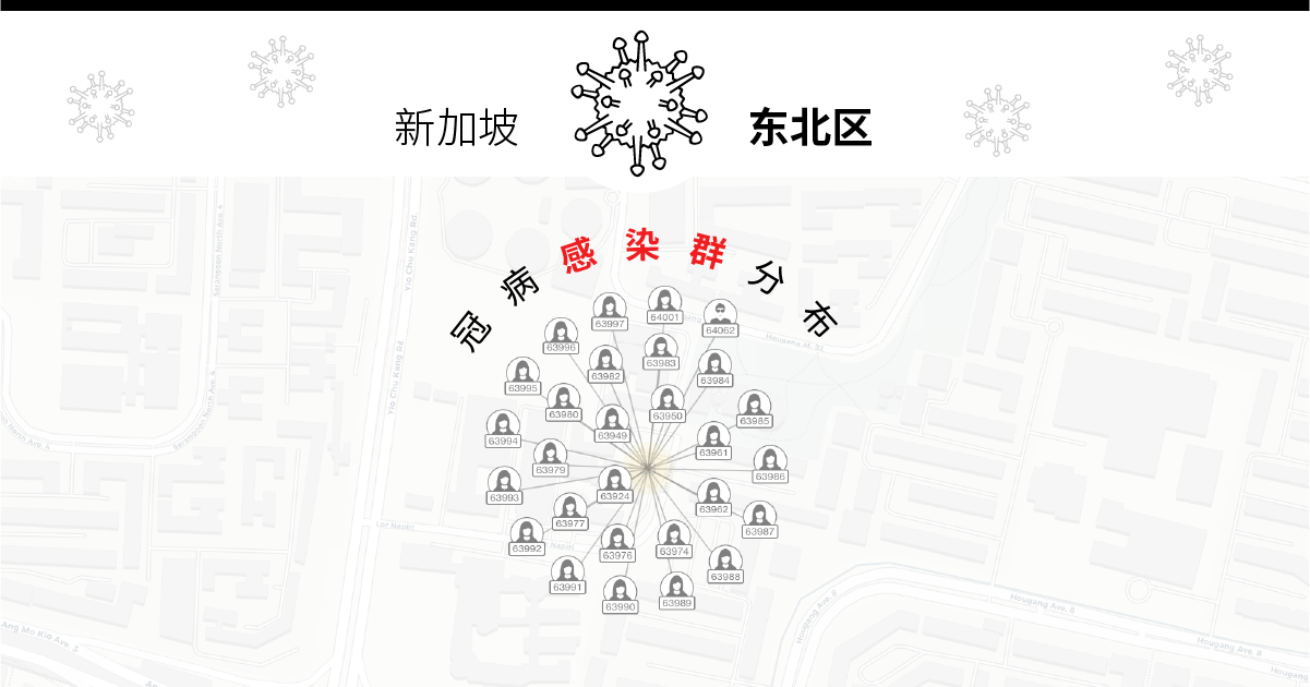 点击地图中感染群或右下方“+”“-”键缩放地图。地图放大到最大后,点击感染群查看群内病例详情。