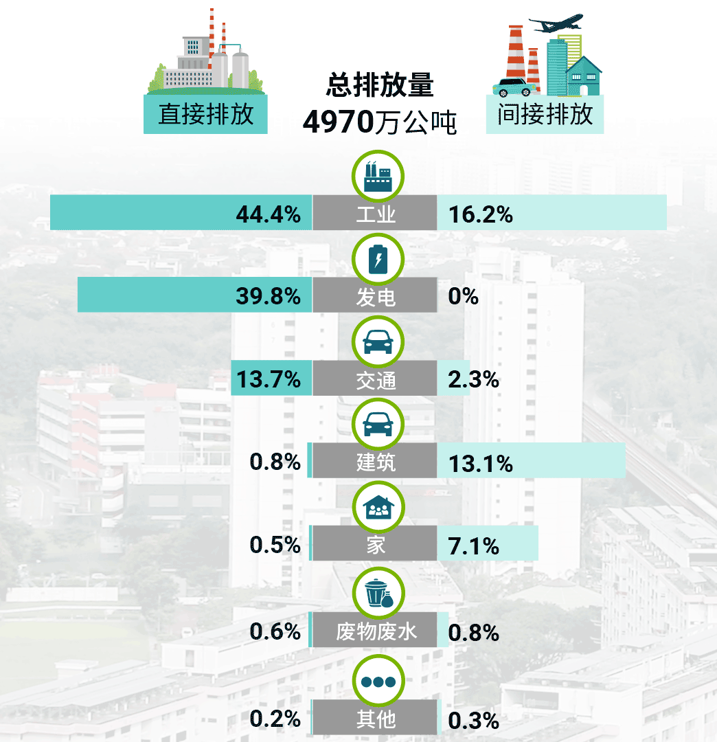 新加坡作为国际主要石油储存与炼油中心,包括化工企业在内的工业领域占全国总排放量的四成以上,也是我国最主要的排放来源。这一行业在可见的未来仍是我国经济支柱,在这个前景下,提高能源效率将是减少工业领域排放的重要策略。