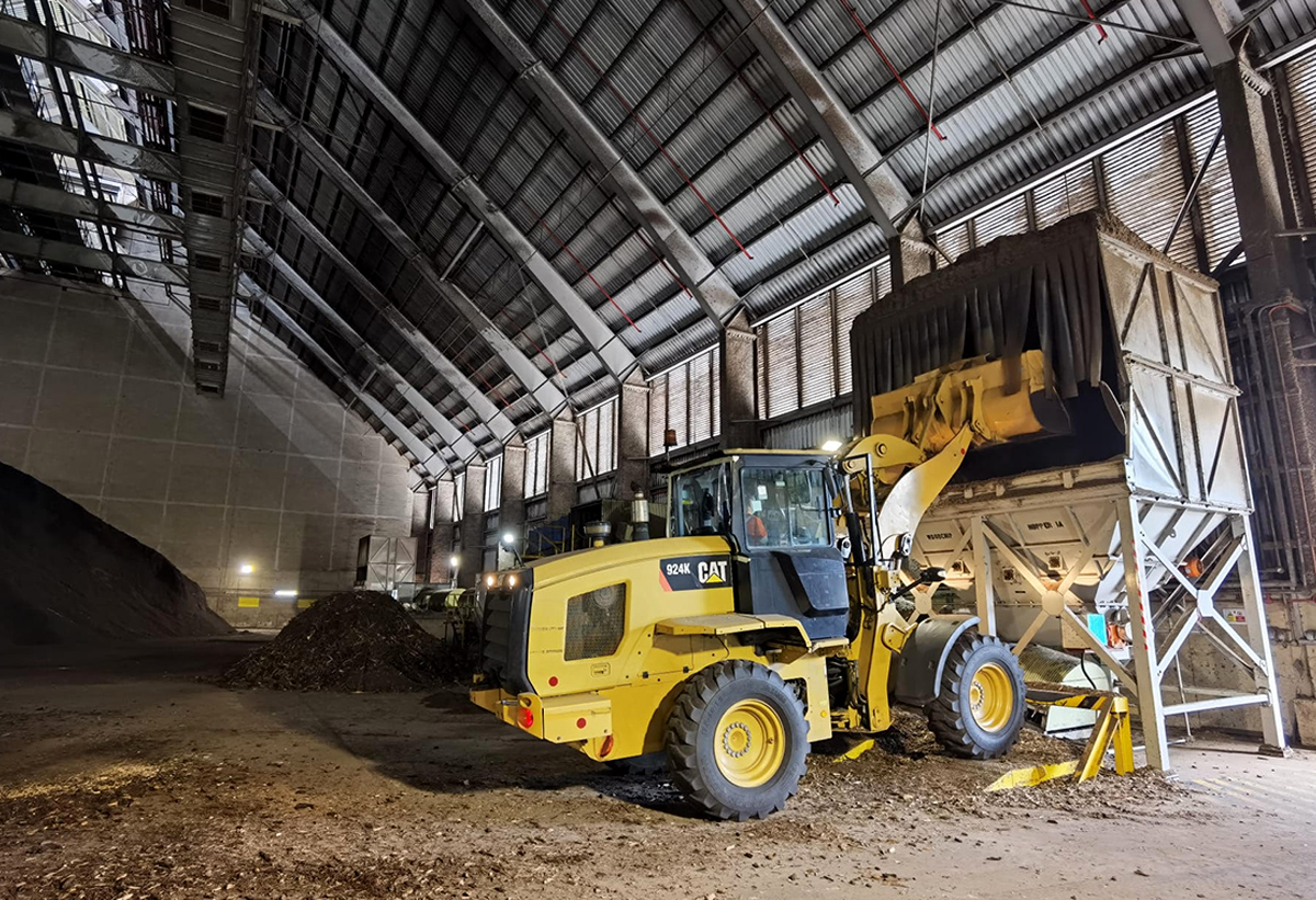 工作人员将生物质装进料斗后,再运到循环流化床锅炉(Circulating Fluidized Bed)燃烧。(大士能源提供)